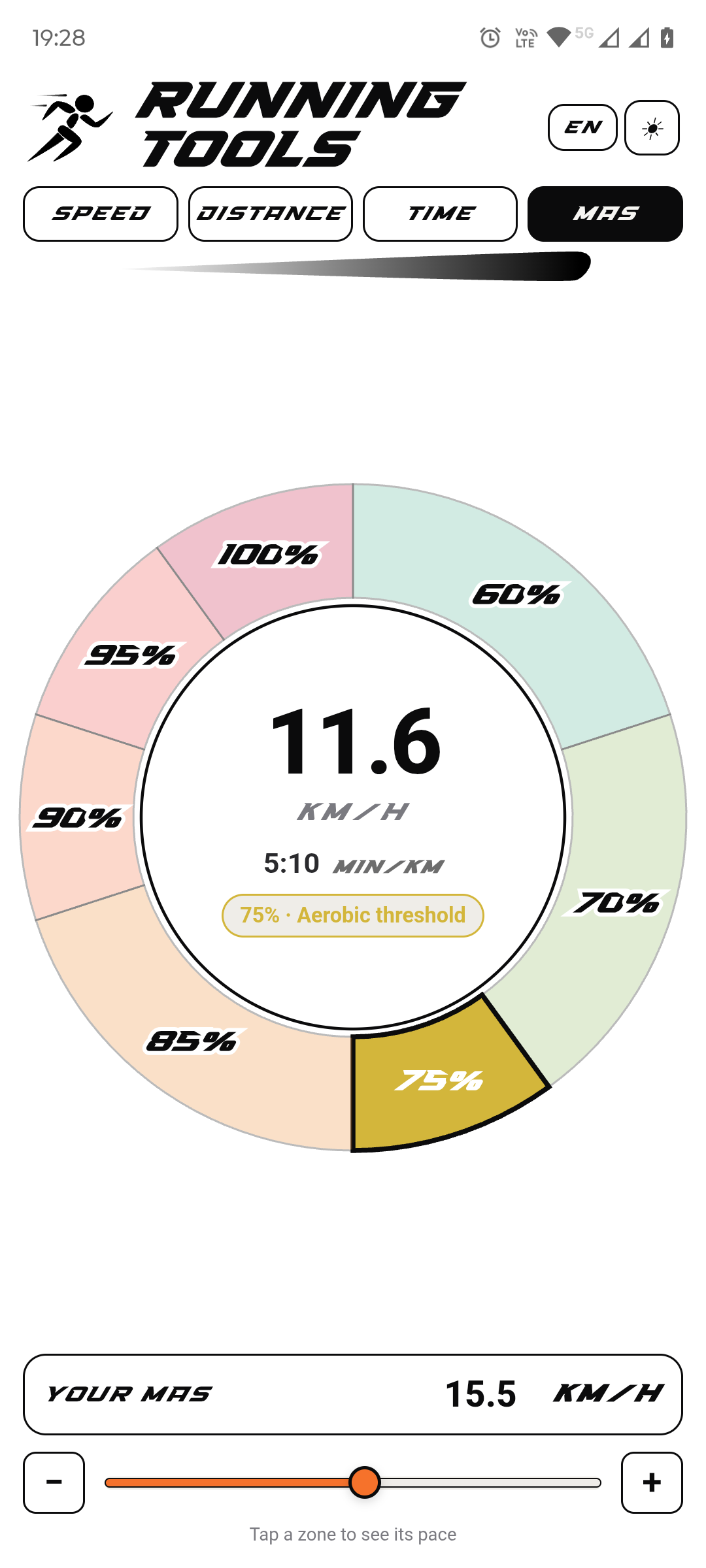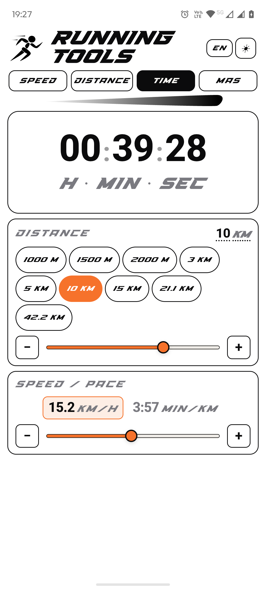 Running Tools is a set of simple tools for runners. You can quickly convert speeds to paces, calculate distance covered, or determine a percentage of your MAS (Maximal Aerobic Speed).